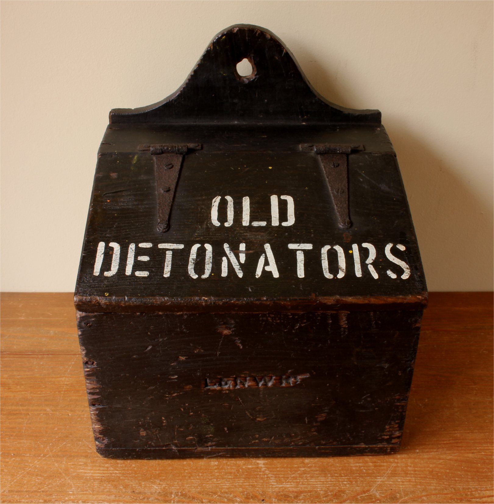 This wooden box that dates from c1900 originated from London & North Western Railway and would have been used to store used detonators.