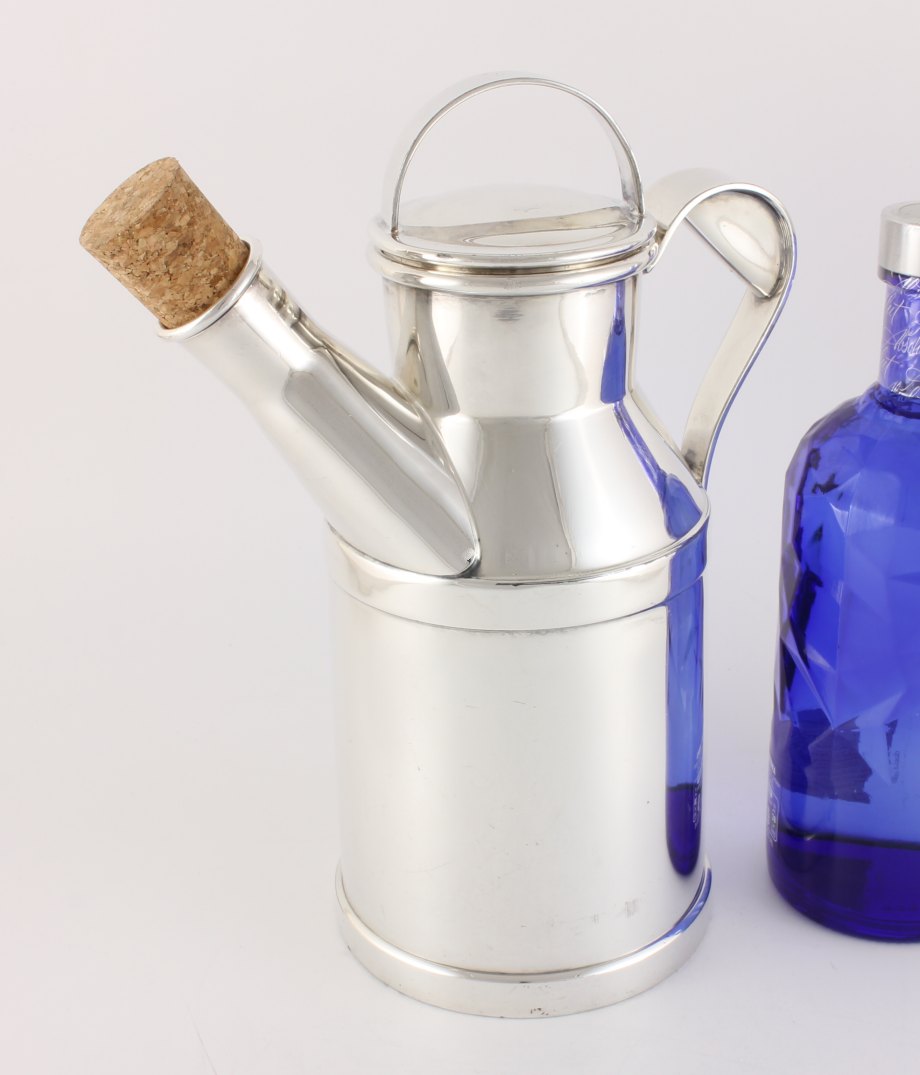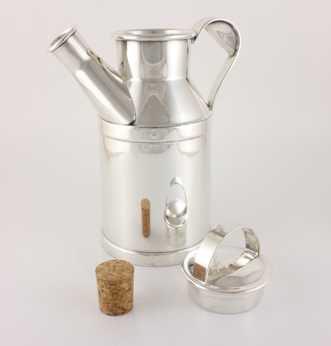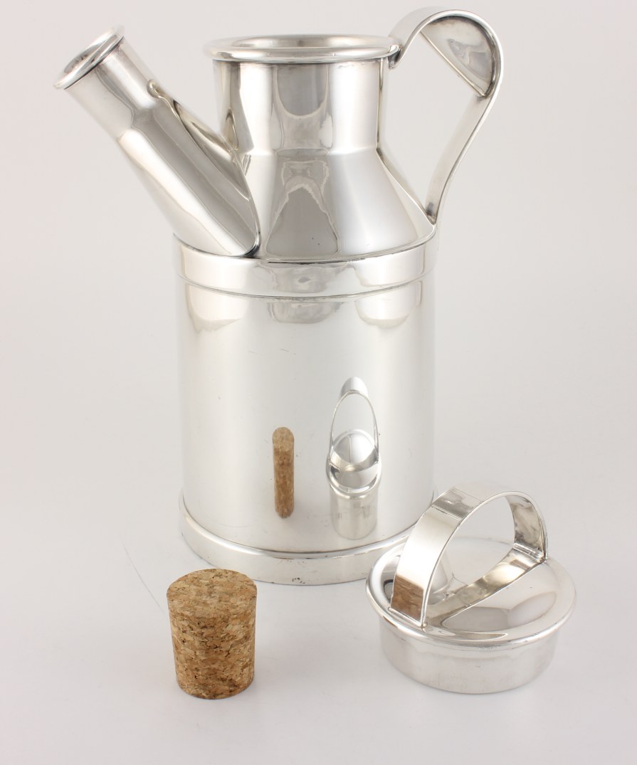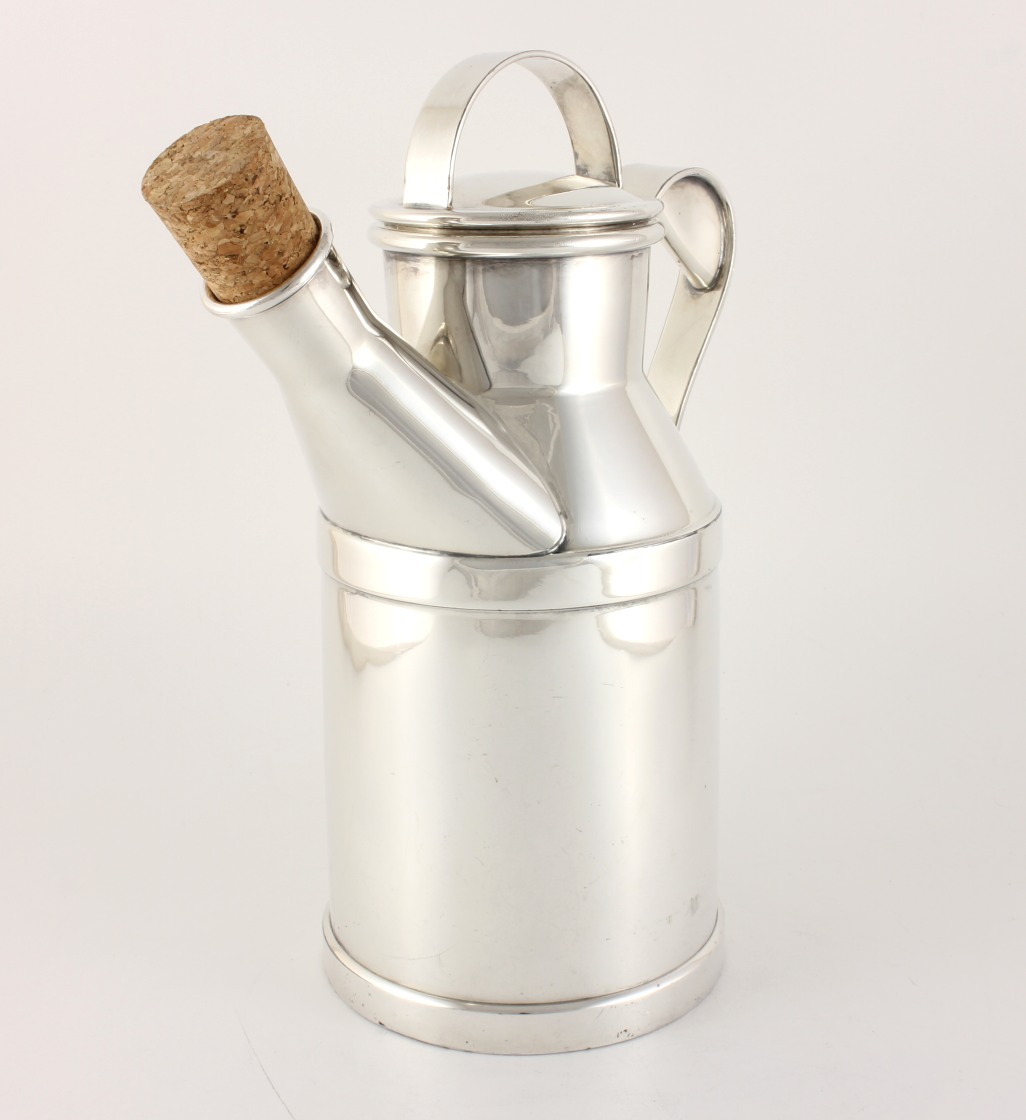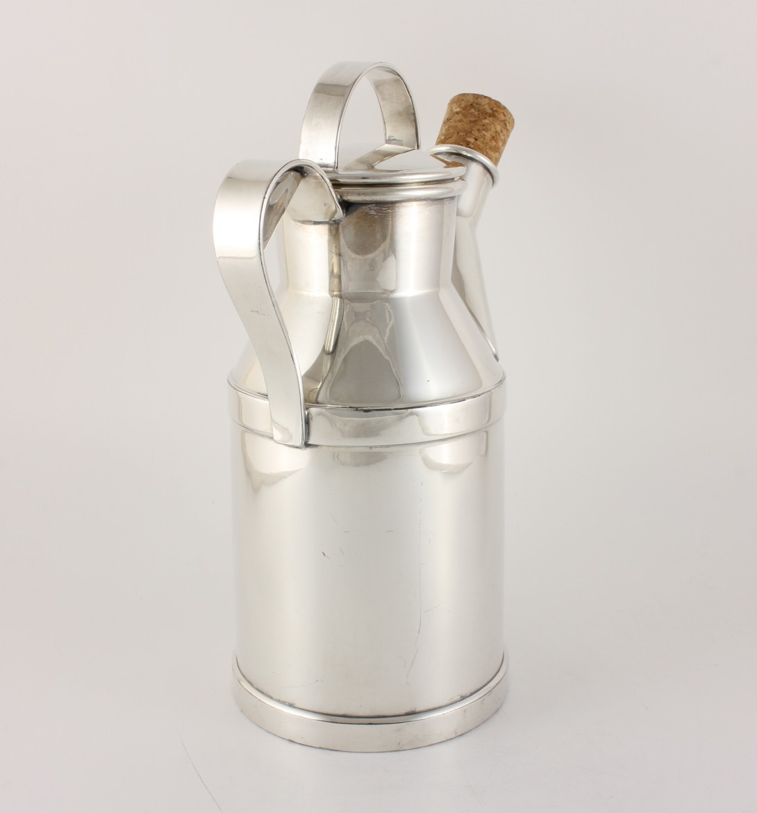 This stylish silver plated cocktail shaker which is by renowned American silversmith Reed & Barton dates from the 1930's and has a wonderful design in the style of a milk churn.