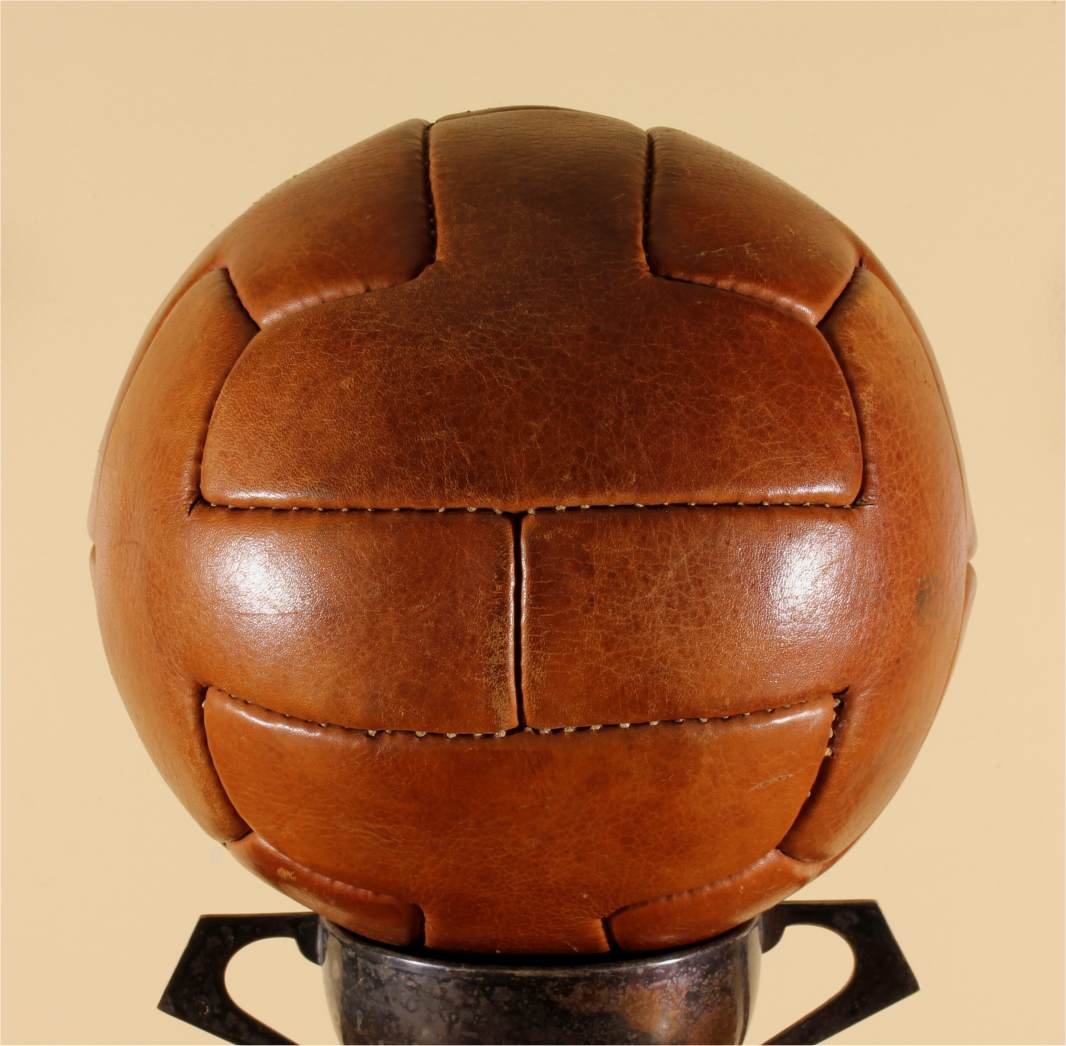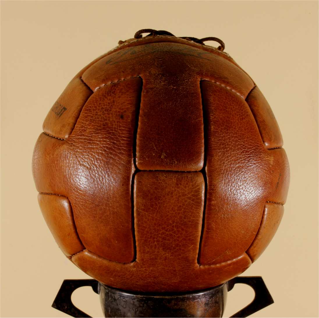 This great looking soccer ball is a nice vintage one dating from 1950's/1960's, has leather laces and has a great look. This ball has been fitted with a new bladder so is inflated, holds it's shape and displays well.