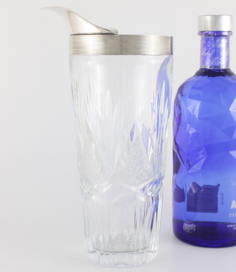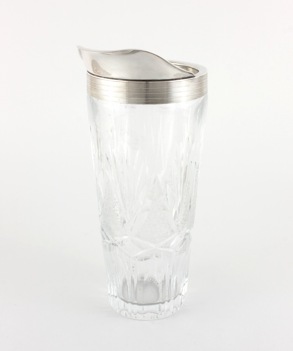 This stunning Art Deco cocktail pitcher / jug which dates from c1930 has an Italian silver pourer, strainer and rim with an engine turned decoration.