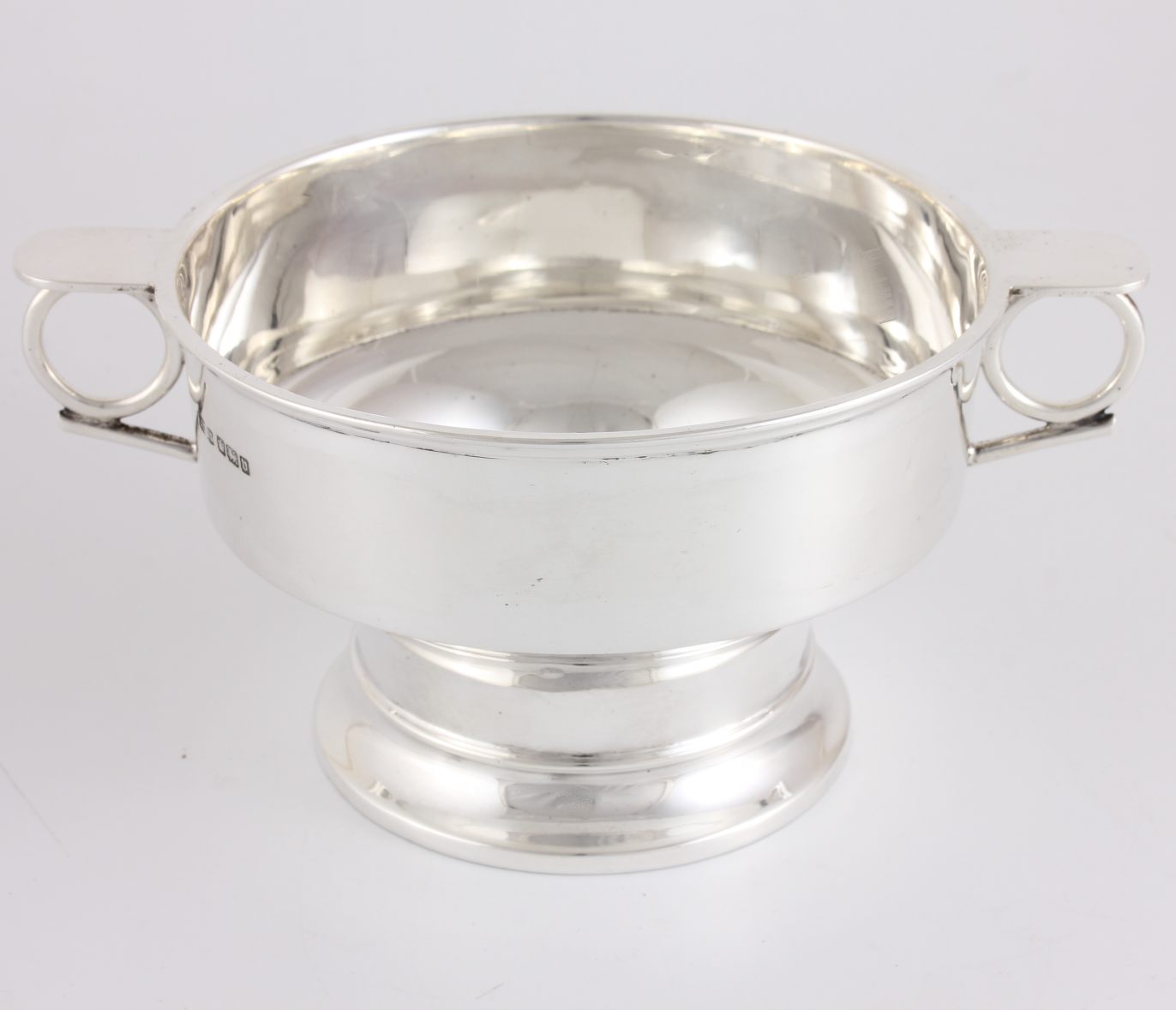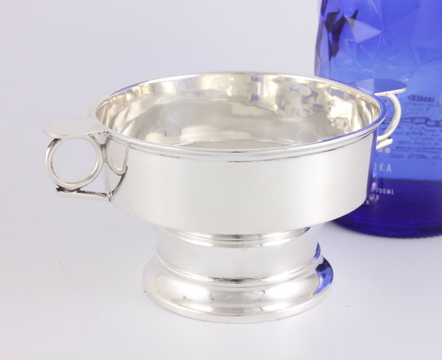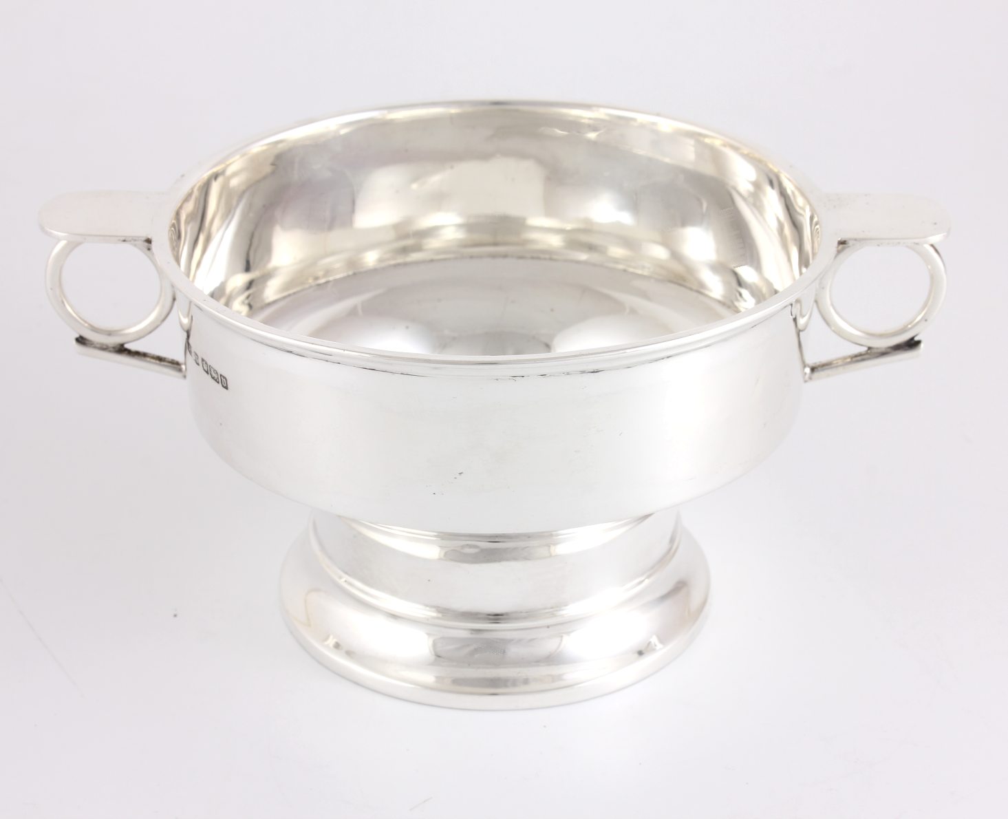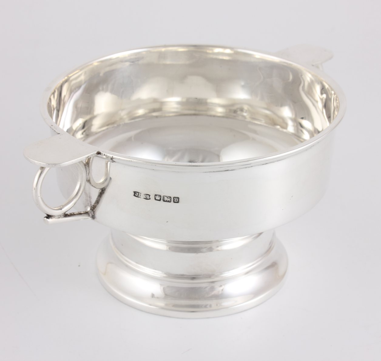 This fabulous porringer cup has two stylish side handles and sits on a raised base.
