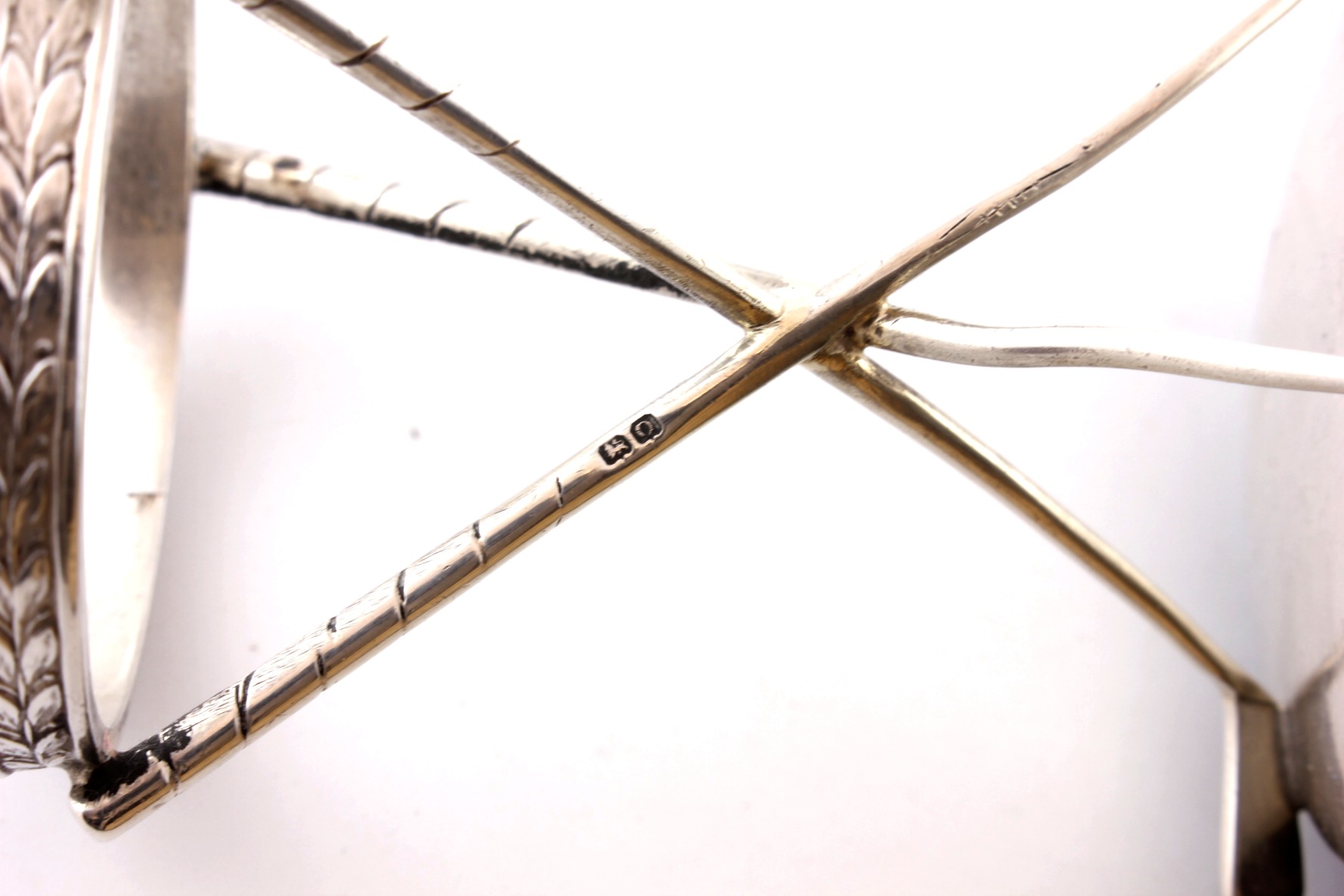 Hallmark to silver plaque: Lion for sterling silver. Anchor for Birmingham. Date letter O for 1938 and maker's mark T&S for Turner & Simpson Ltd.