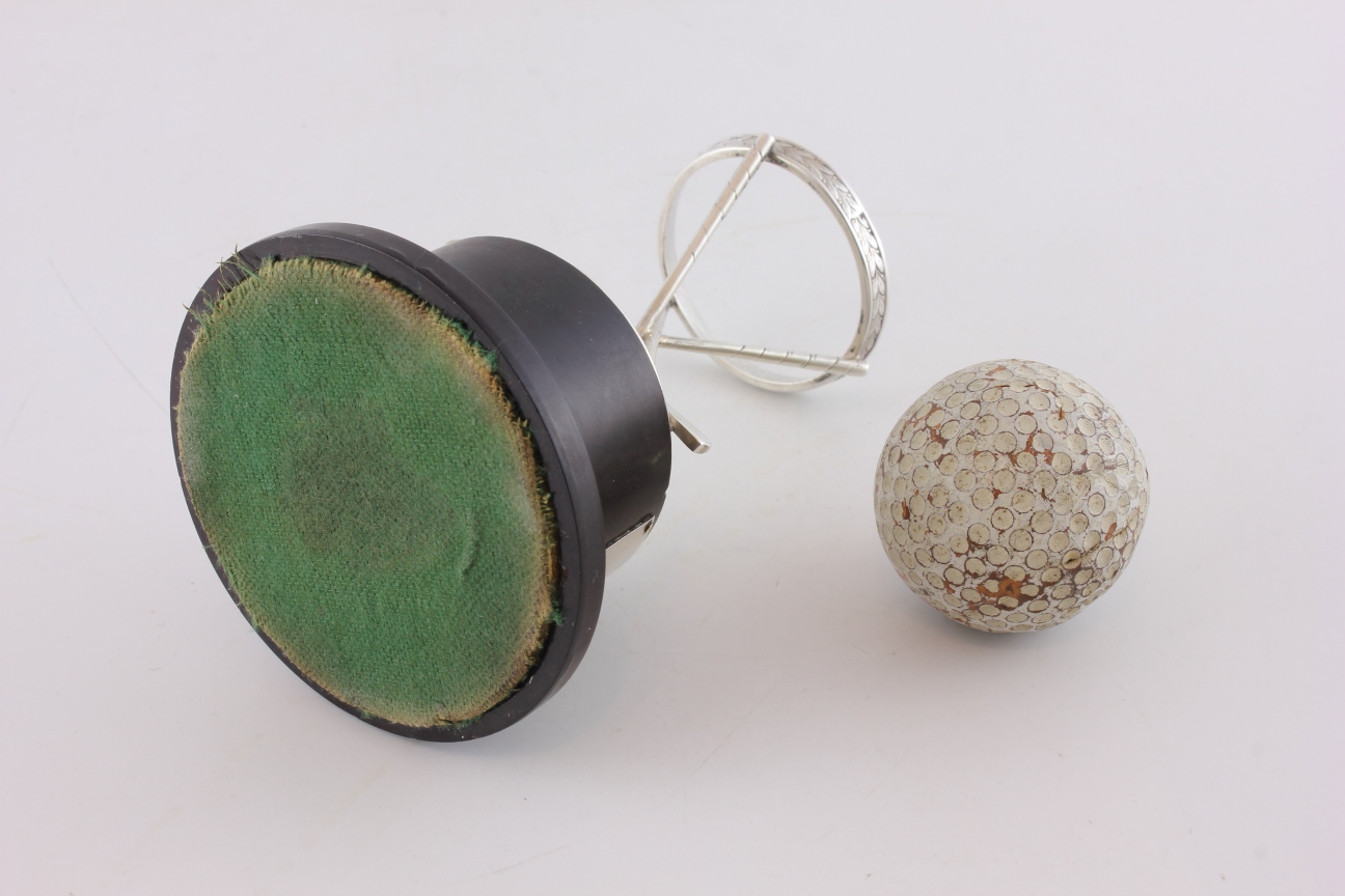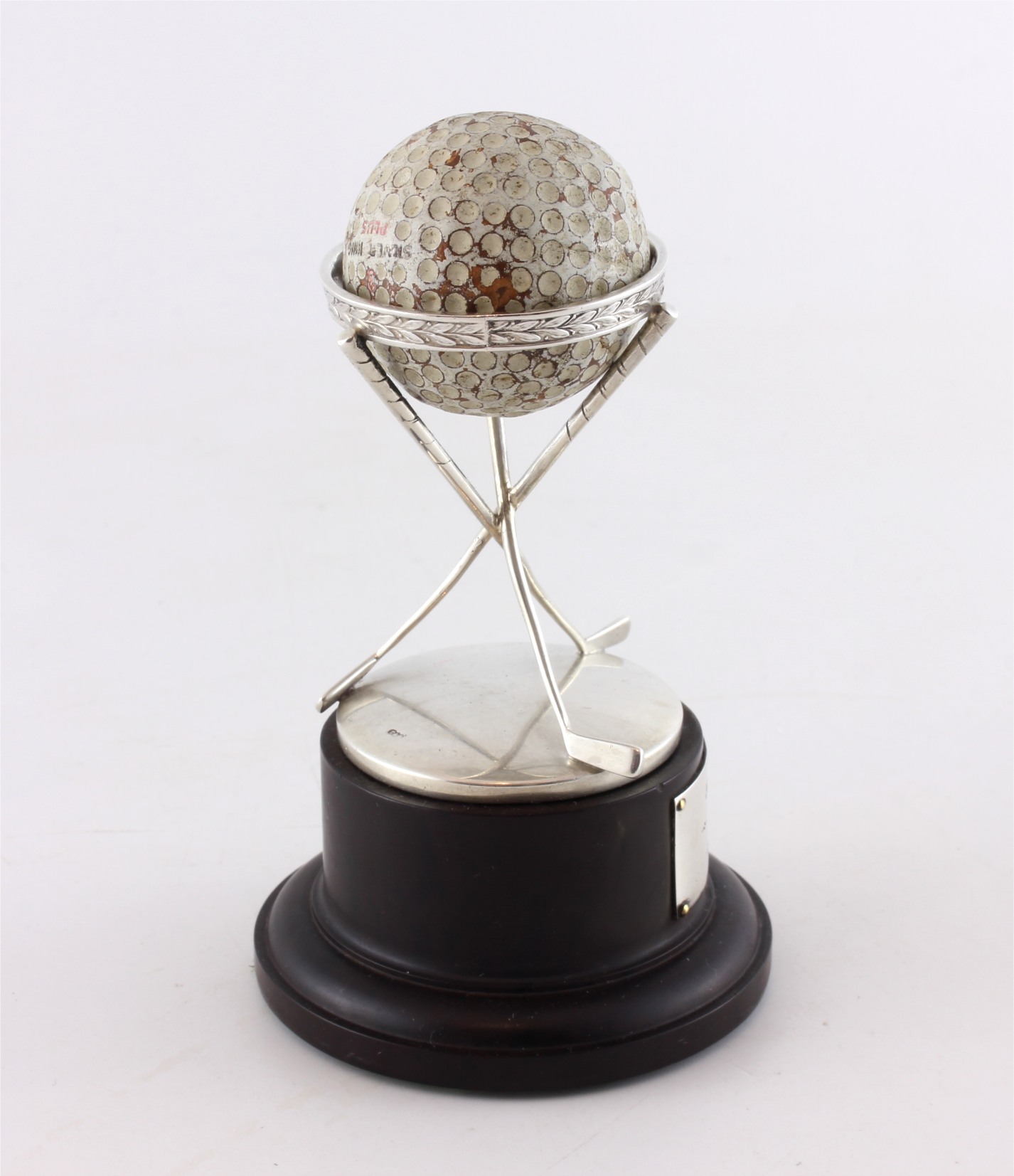 Material: Solid silver trophy. Golf ball. Black bakelite base.