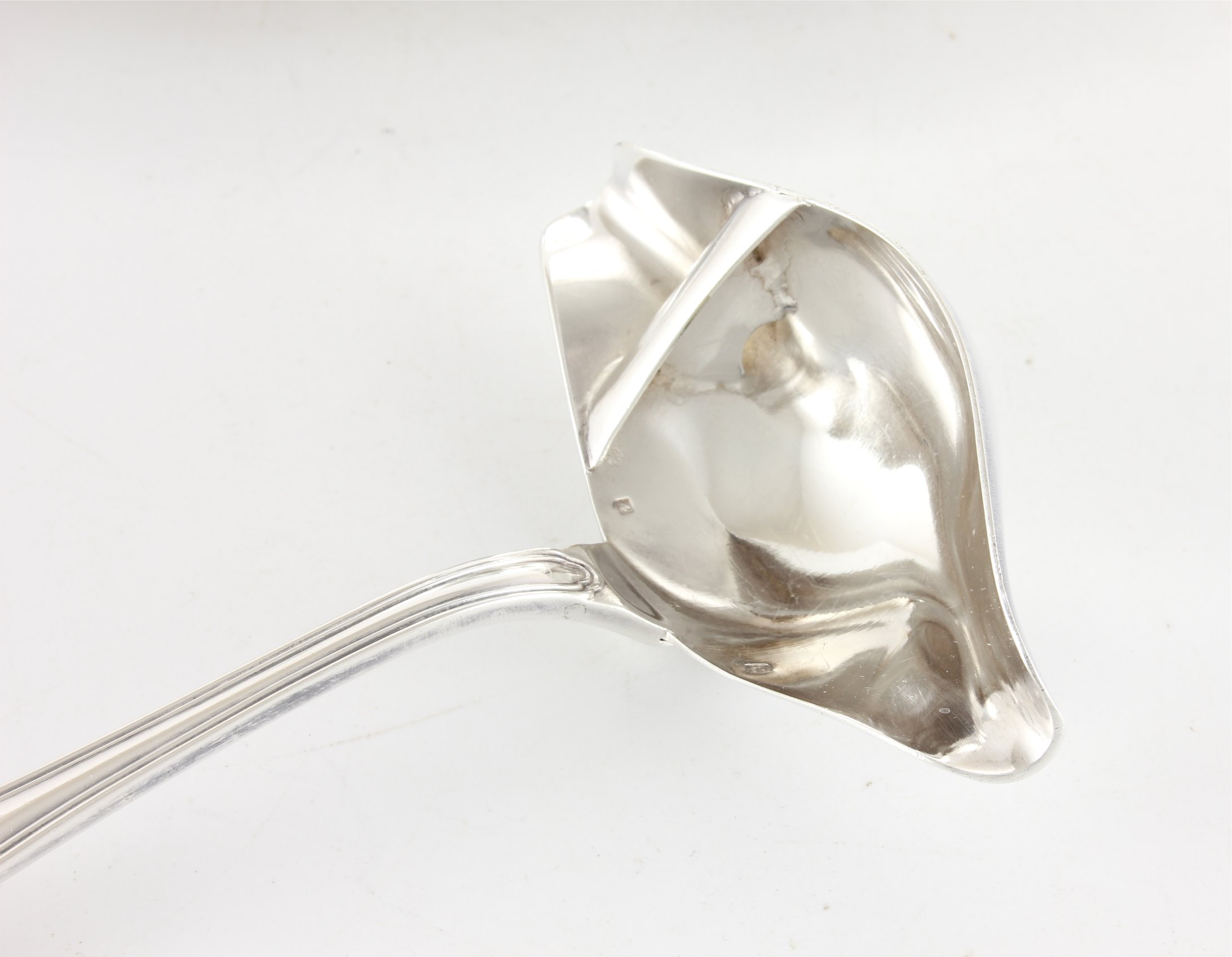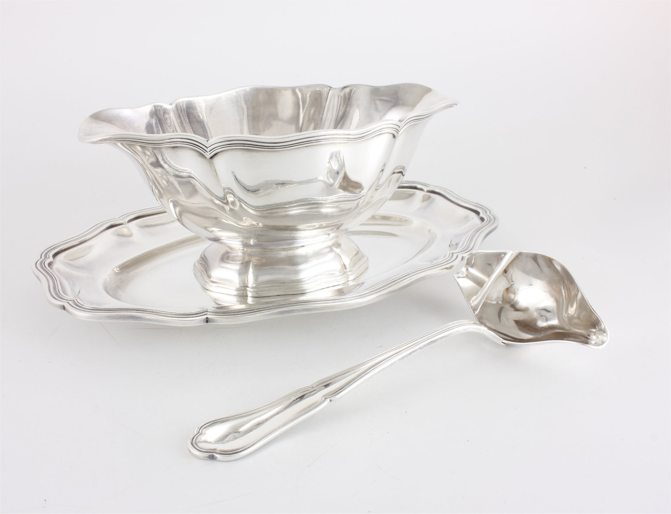 Marks: Marked to base of sauce boat and spoon with the maker's mark for St Medard.