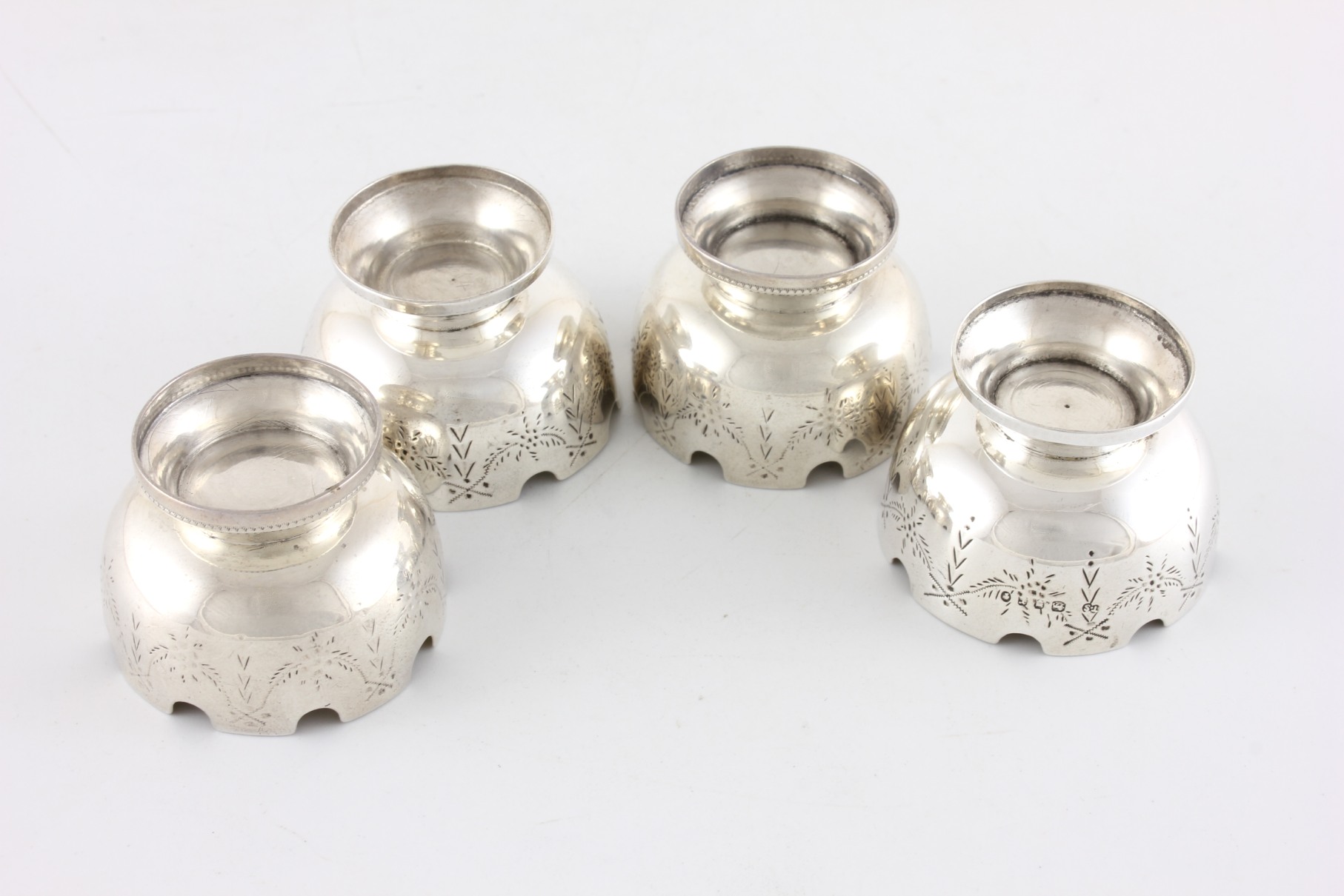These four stylish antique solid silver salt cellars which are by silversmith Thomas Smily date from the 1870's, are each marked with the maker's marks and date and are a good weight.