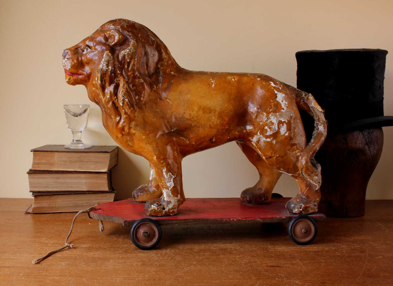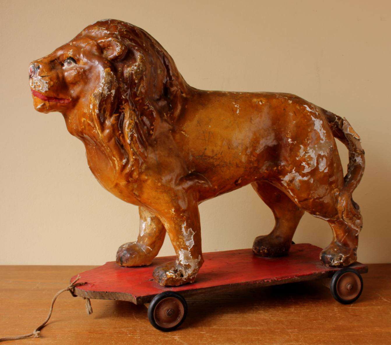 This handsome lion which originates from France is a pull along toy and dates from the early 20th century.