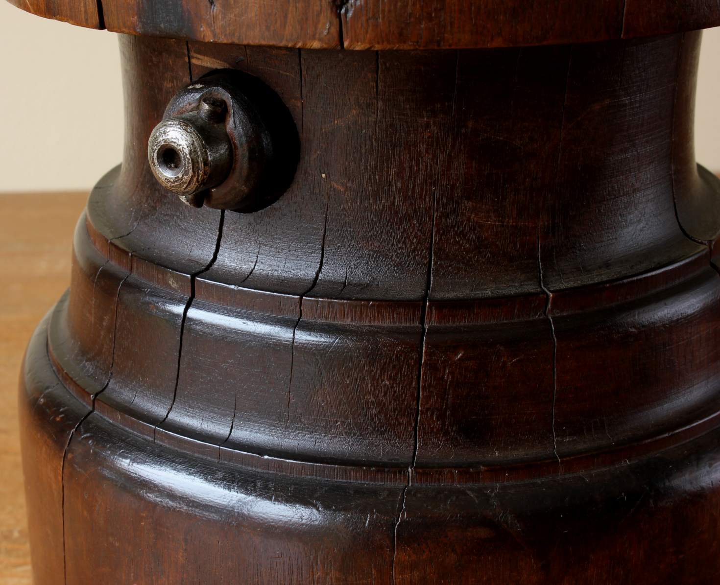 Victorian Milliner's hat stretcher / sizer which is made of beautifully patinated wood has a metal handle that adjusts the size when turned and dates from the late 19th century.