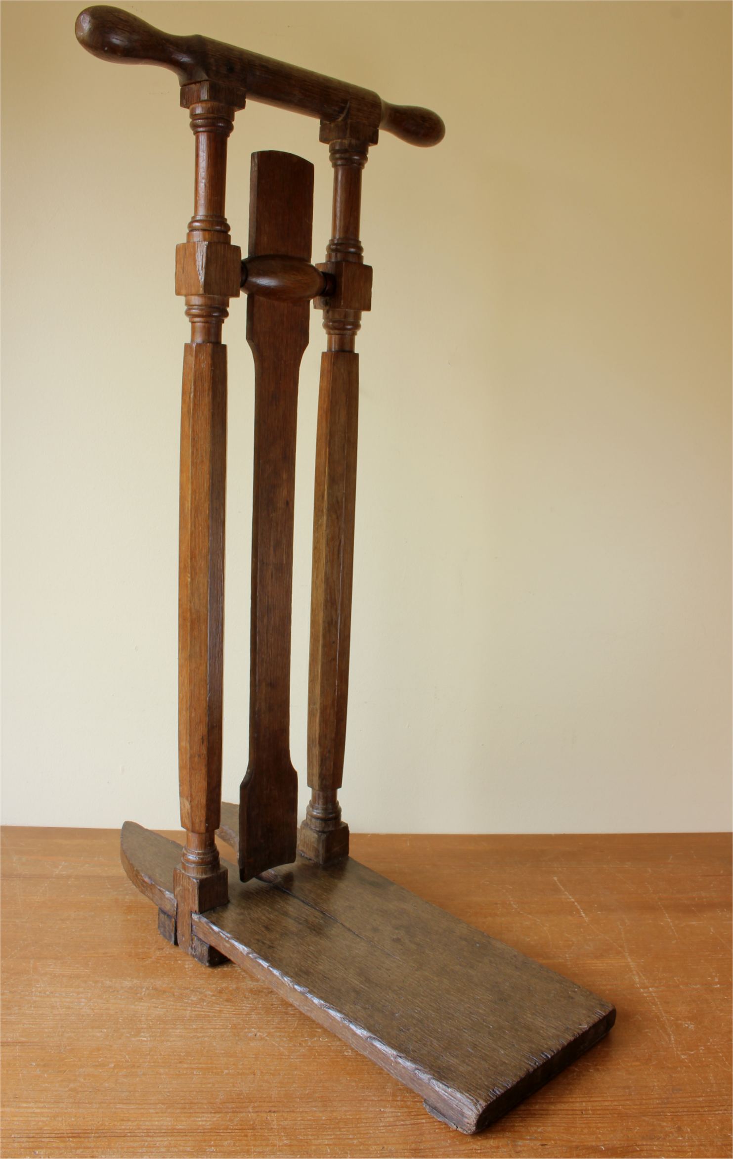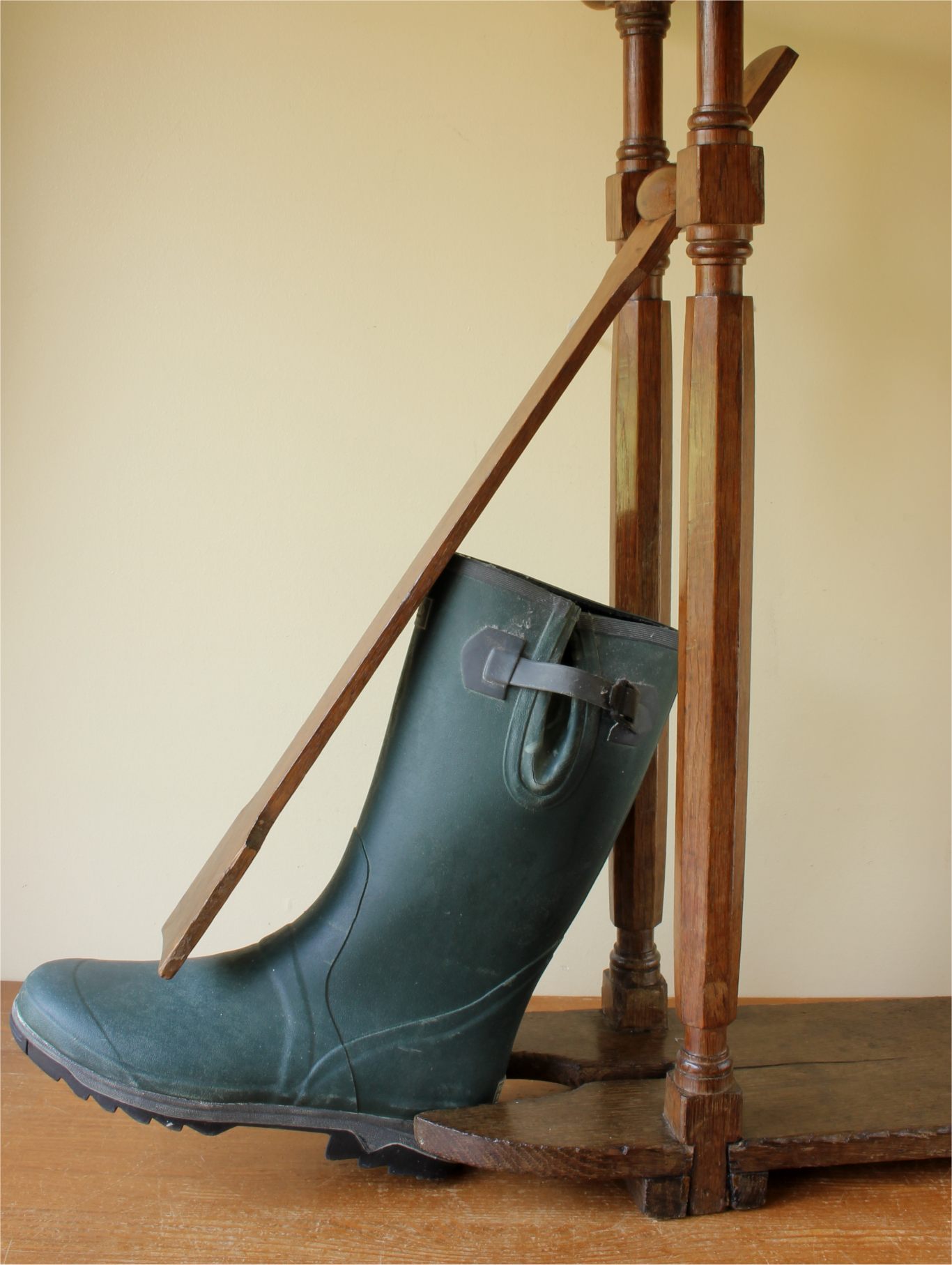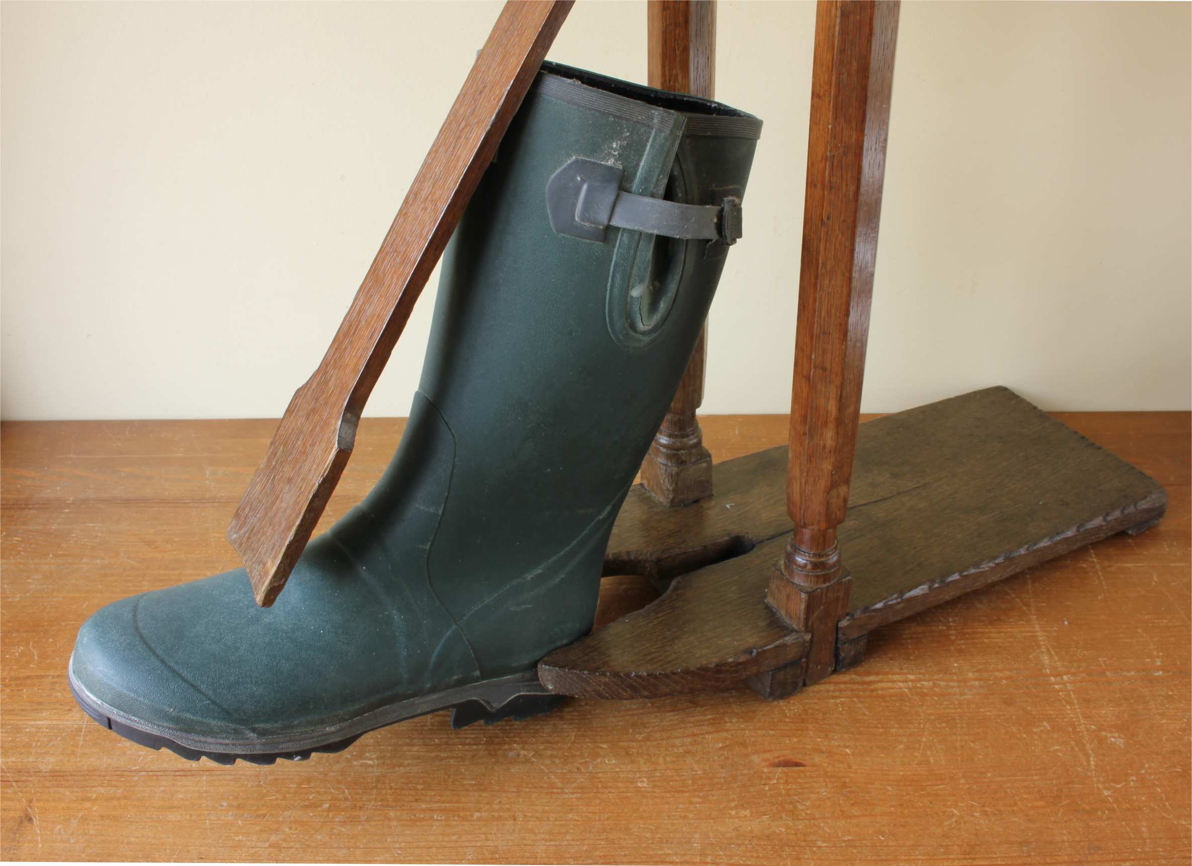 To remove your footwear you would place your boot heel in the slot on the wooden base and then put the swinging arm panel on top of your boot to keep it in place. You would then be able to remove your footwear by pulling your leg out whilst getting leverage by gripping the nicely turned wooden handles at the top.