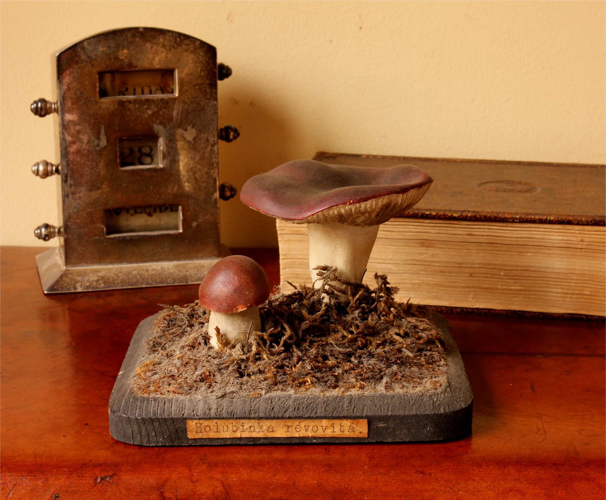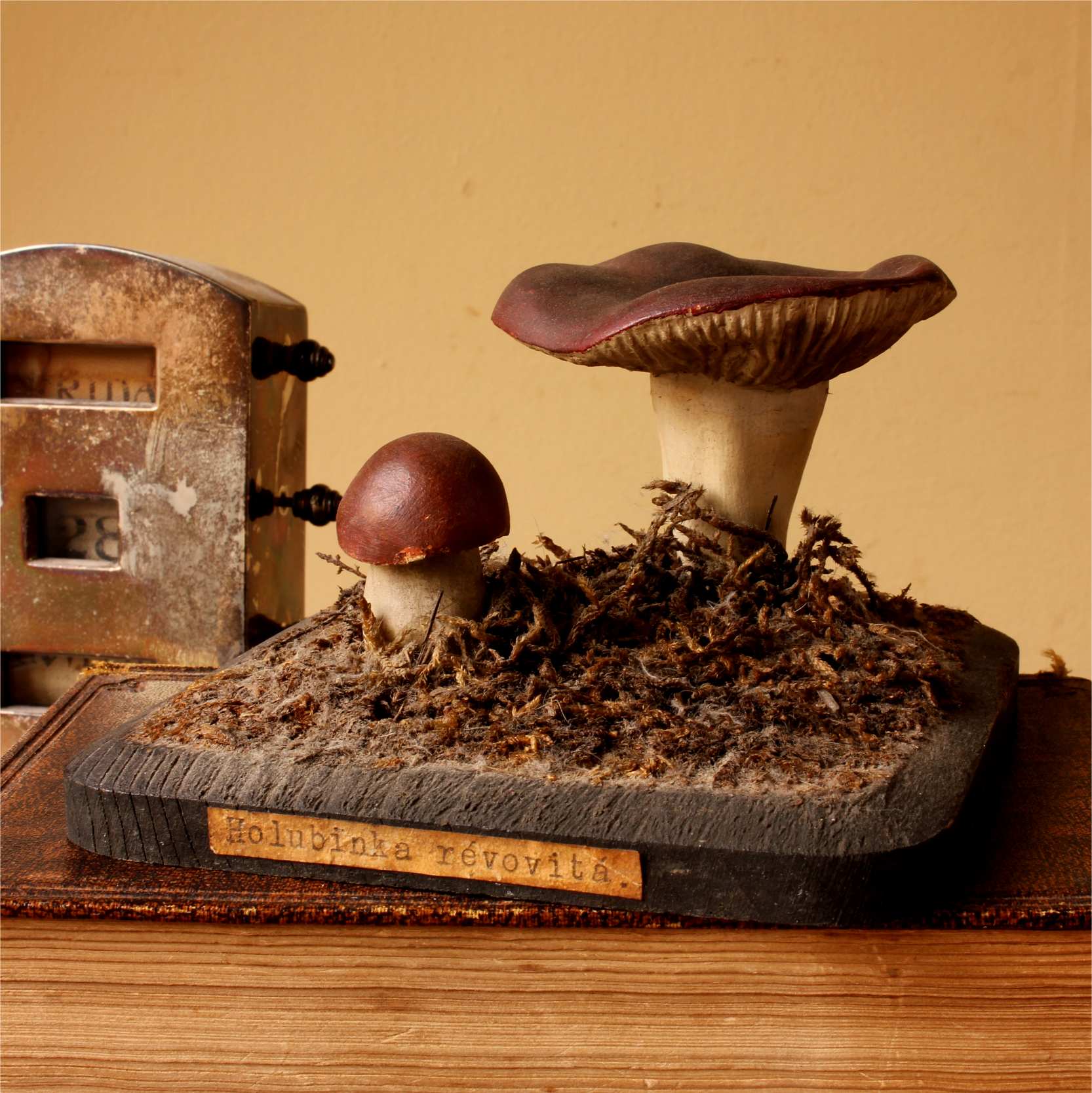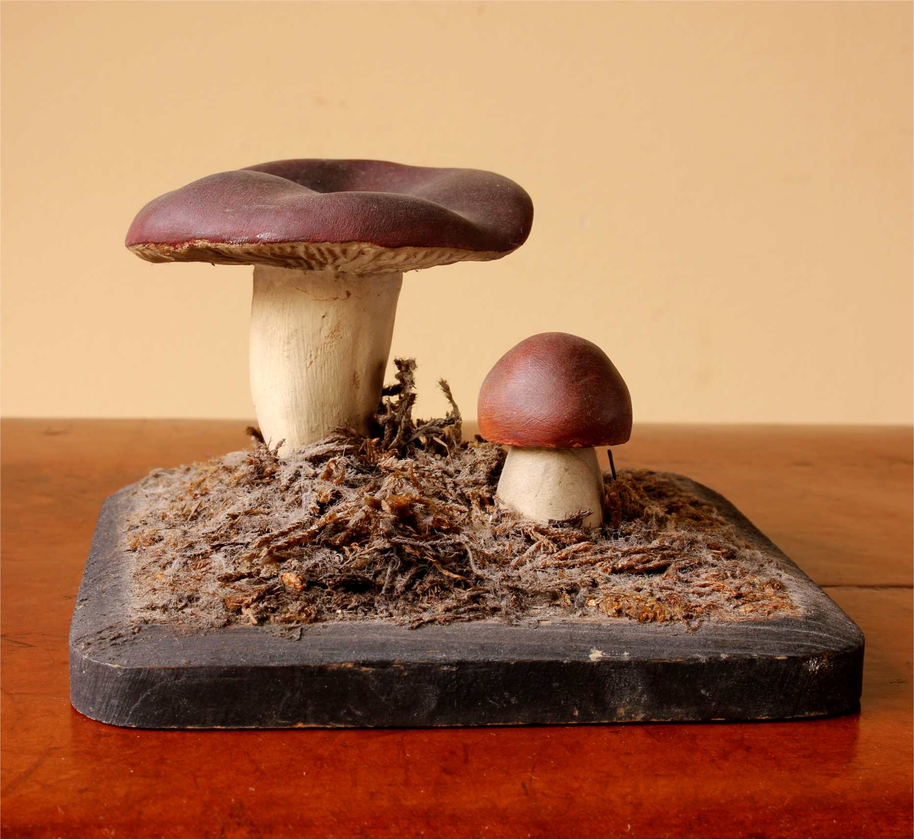 This handsome teaching aid which dates from the early 20th century is of a group of two Holubinka revovita mushrooms and would have been used in a school or university.